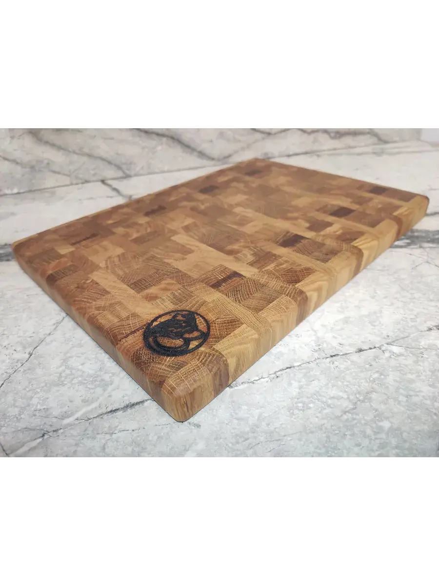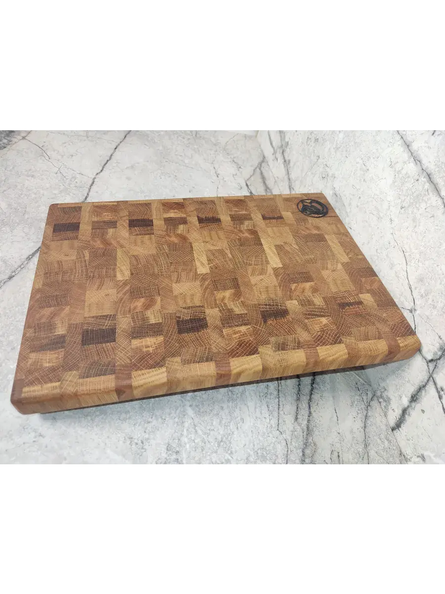 Доска торцевая деревянная ручной работы уникальная находка всем ценителям изысканного стиля, качества и комфорта. Размер доски 320*230*20 мм. Торцевая доска имеет особенности - так как нож при резке продуктов входит в доску, как бы раздвигая волокна древесины, нож не оставляет следов на доске, меньше тупится и дольше сохраняет заточку. Изделие из дуба это 100% экологически чистый продукт. Используйте ее для нарезки, сервировки и для подачи ваших кулинарных шедевров. Доска деревянная разделочная прекрасно подходит для нарезки хлеба, мяса, рыбы, овощей. Стильные практичные торцевые разделочные доски идеально дополнят любой интерьер. Готовить любимые блюда теперь станет проще – профессиональная доска из дерева большого размера - важный элемент современной кухни.